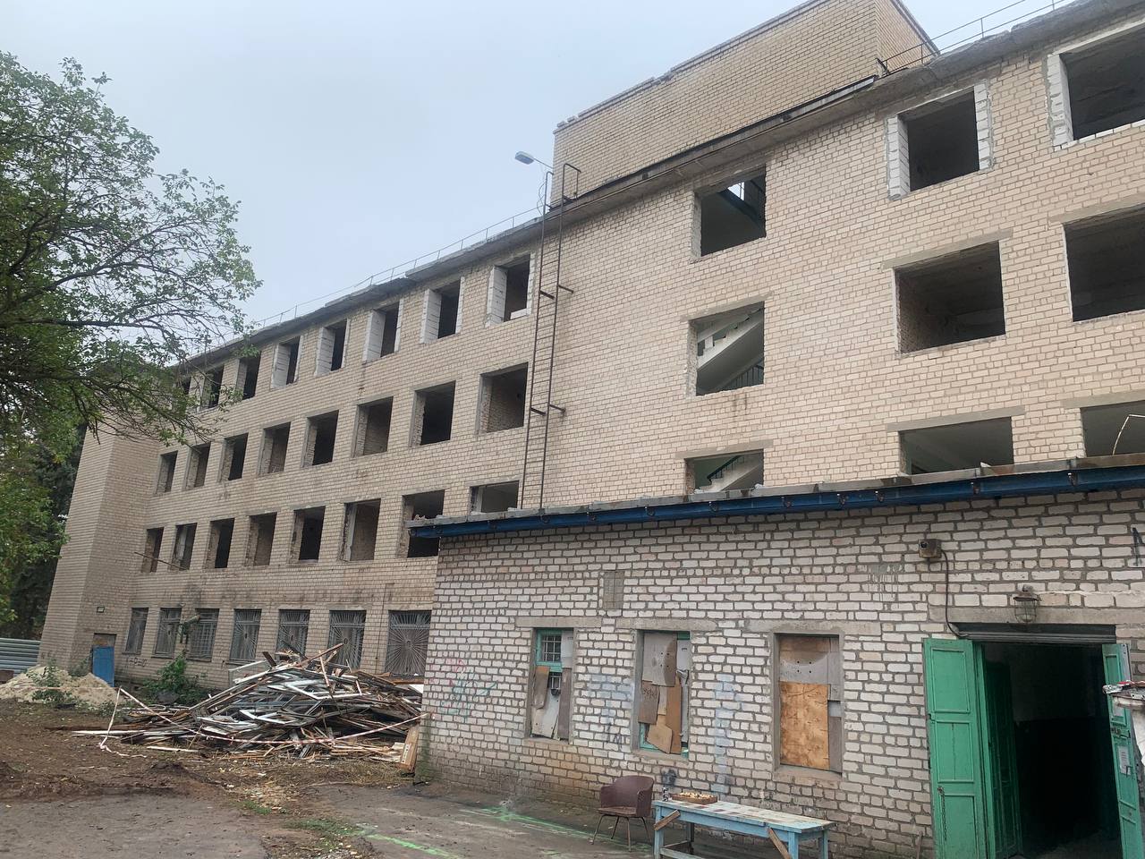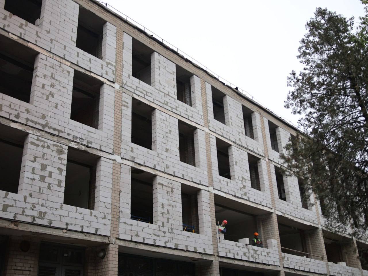 Віталій Синицький, заступник технічного директора підрядної організації розповів: «Виконуються демонтажні роботи на 2–4 поверхах та завершуються роботи з цегляної кладки на 2, 3 і 4 поверхах. Розпочалися роботи з вимірів конструкцій. Мета – до настання холодів закрити периметр будівлі. Два тижні тому ми розпочали роботи на покрівлі: демонтаж старої та встановлення нової. За планом, ці роботи завершаться ближче до кінця жовтня, що дозволить уникнути потрапляння вологи у будівлю та виконувати роботи у зимовий період. Паралельно з внутрішнім оздобленням планується початок монтажу мереж водопостачання, каналізації та електрики. Орієнтовно в середині зими».