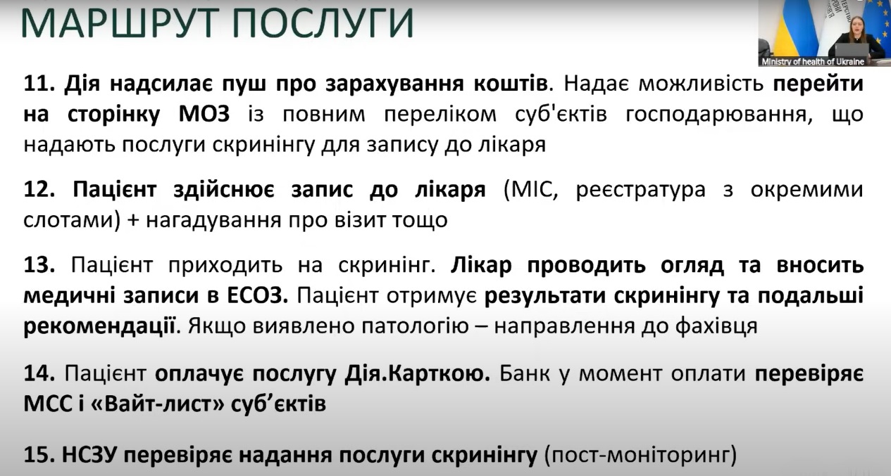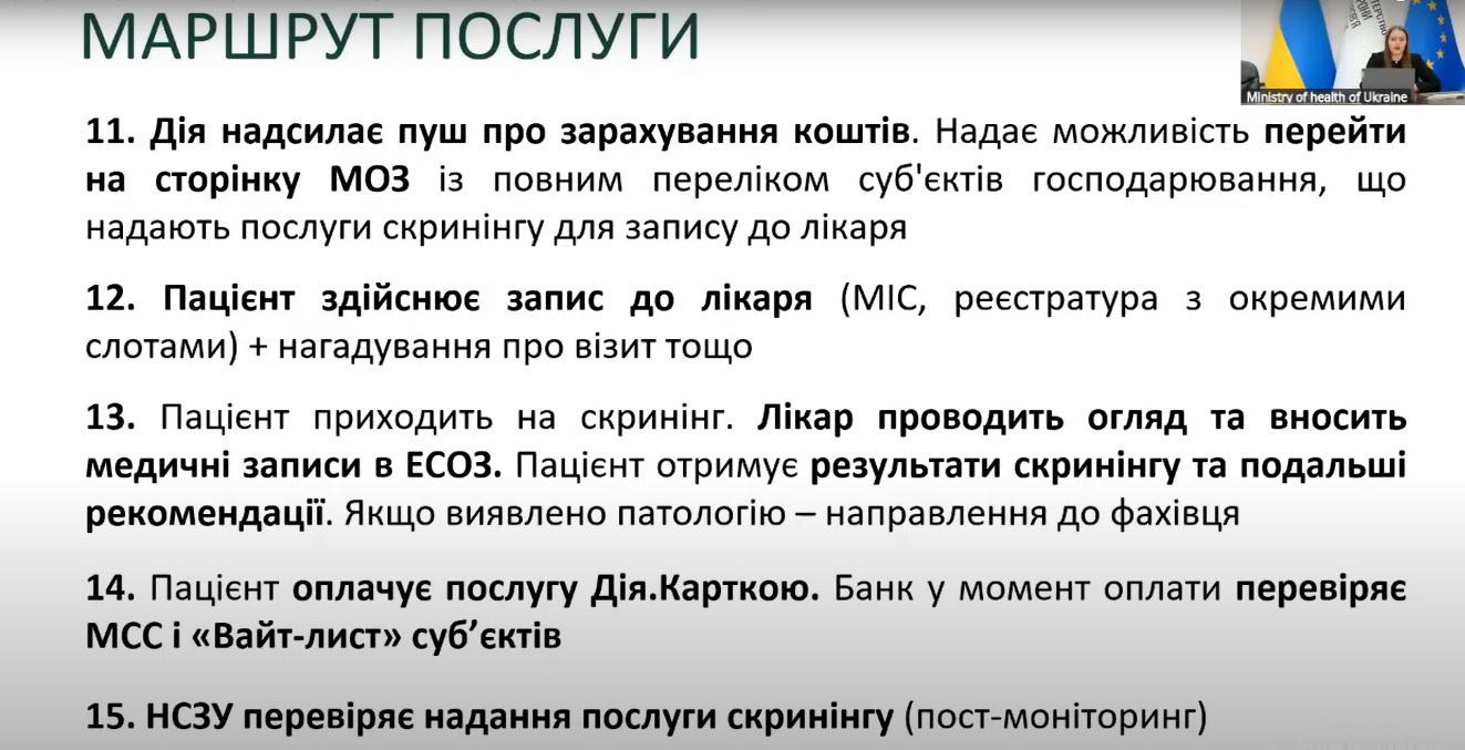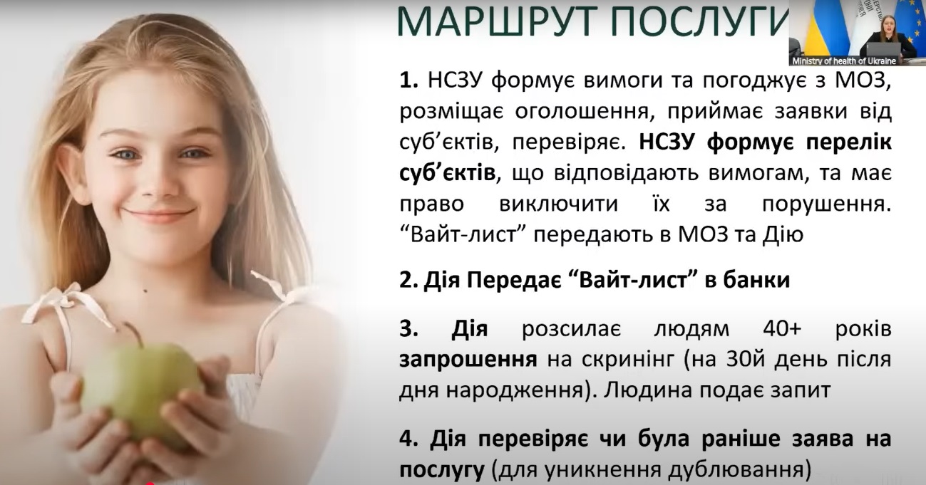 Пацієнти зможуть самостійно обрати медичний заклад, де проходитимуть обстеження. Результати вноситимуться до електронної системи охорони здоров’я, а за їх коректністю слідкуватиме Національна служба здоров’я України.