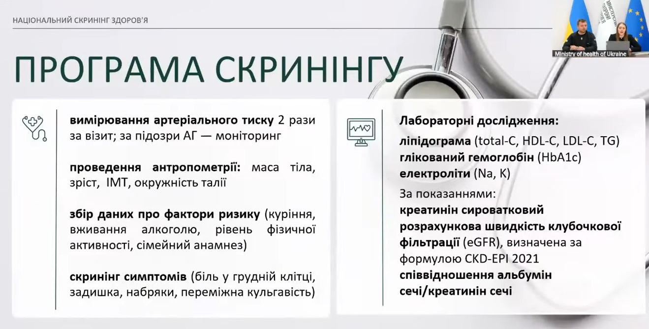 «Це буде безкоштовно. Очікується, що наступного року таку програму зможуть пройти щонайменше 5 мільйонів людей. Загалом в Україні близько 19 мільйонів громадян віком від 40 років», — зазначила вона під час тематичного вебінару МОЗ.
