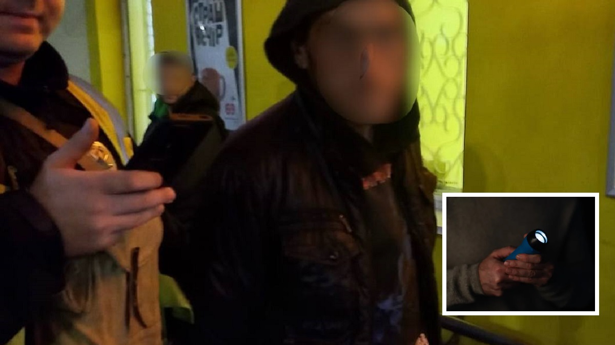 На вулиці Романа Шухевича невідомий чоловік погрожував жінці ножем і відібрав у неї ліхтарик. Після отримання виклику поліцейські швидко прибули на місце події. Потерпіла описала зовнішність нападника, і вже невдовзі правоохоронці помітили чоловіка, який збігався за орієнтуванням.