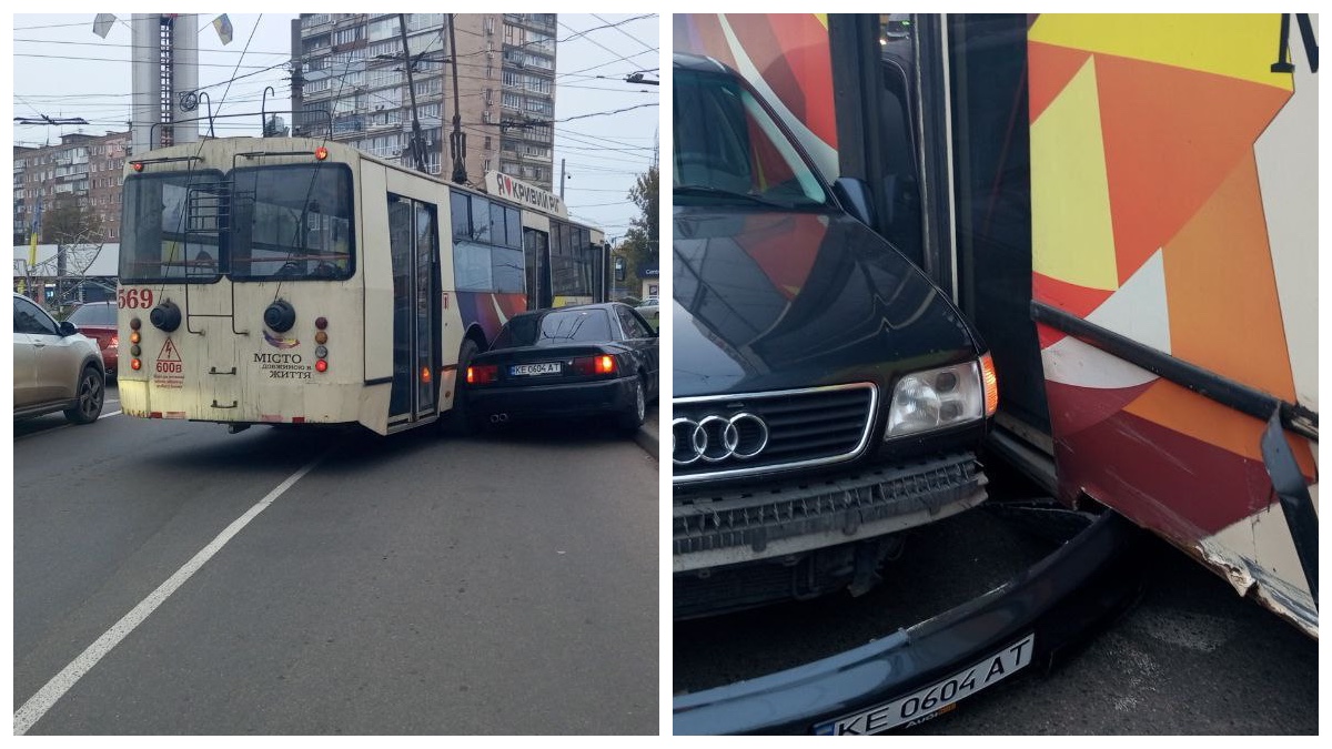 4 листопада близько 16:00 перед кільцем 95 сталася аварія за участі тролейбусу №569 та машини Audi.