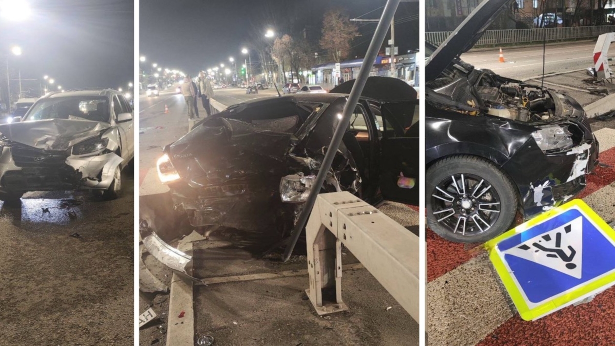 Від потужного удару Skoda врізалася у відбійник в збила знак. На щастя, серйозних травм ніхто не отримав. Водії від госпіталізації відмовились.