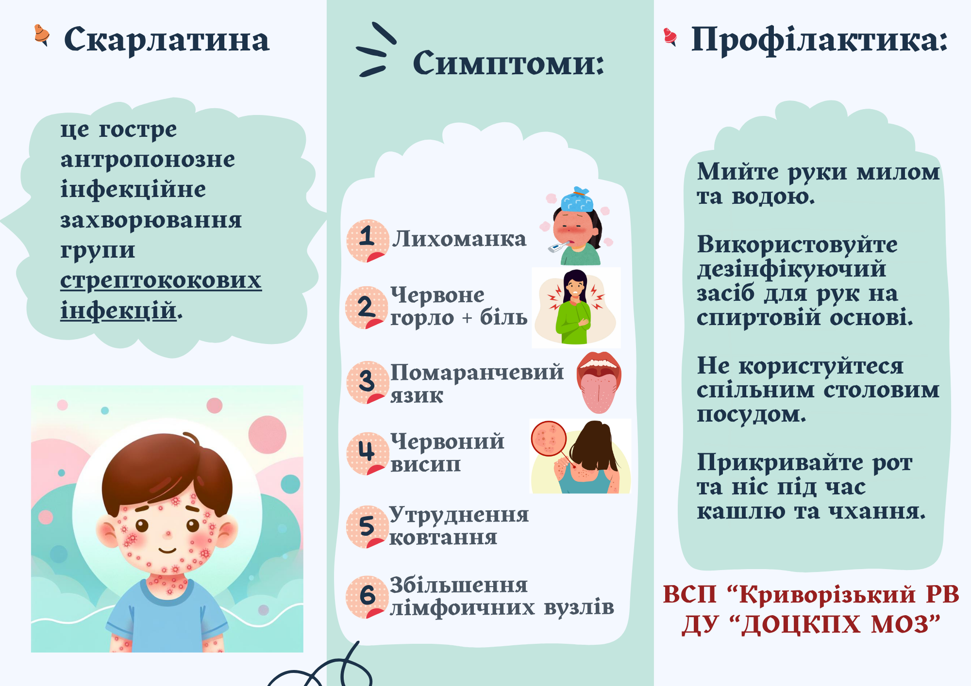 У зв’язку з реєстрацією випадків скарлатини в Кривому Розі, за десять місяців 2025 року зареєстровано 53 випадки, нагадуємо про заходи профілактики проти цієї інфекції.