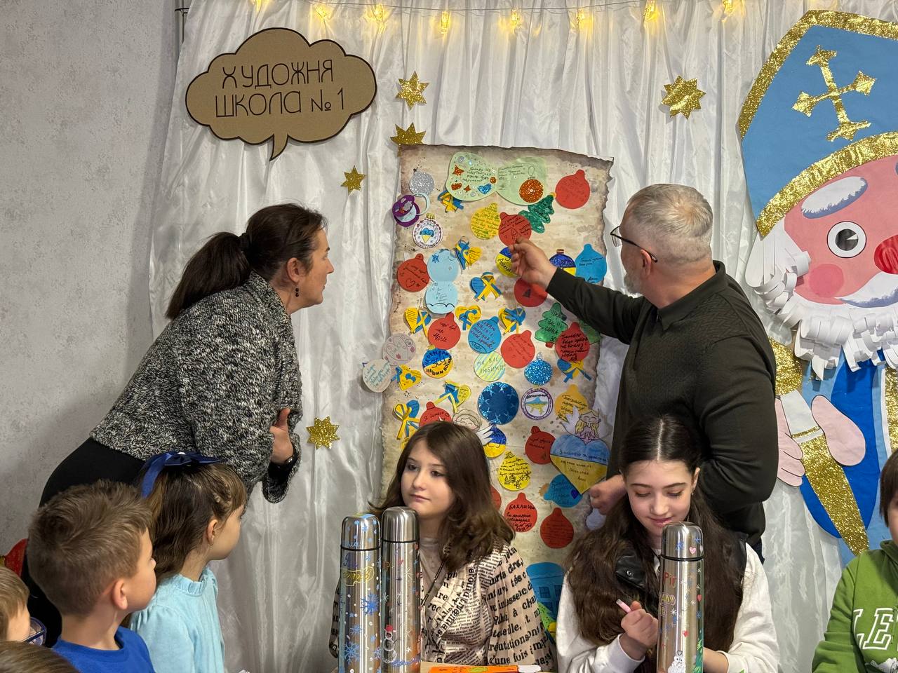 У художній школі №1 юні майстри розписували термоси та малювали листівки для воїнів. Кожен подарунок стане унікальним – теплим, щирим, наповненим любов’ю та вдячністю. Поспілкувався з дітьми голова Ради оборони міста Олександр Вілкул.