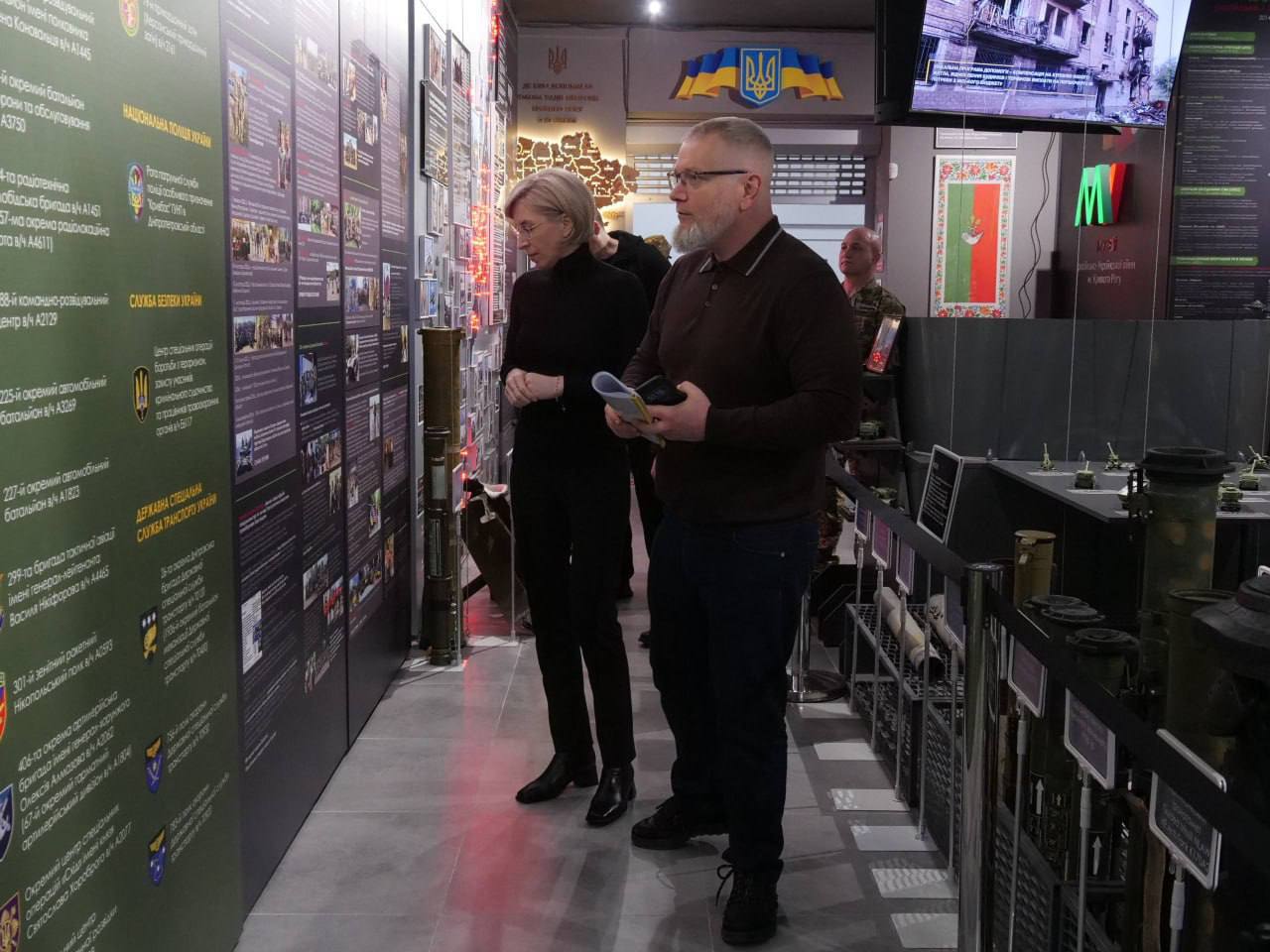 Однією з ключових локацій візиту став Музей російсько-української війни. Ірина Верещук оглянула унікальні матеріали та експозиції, які місто зібрало для збереження пам’яті про подвиги криворізьких воїнів.