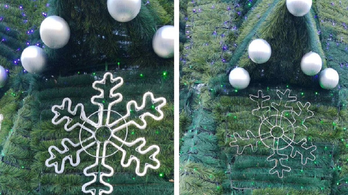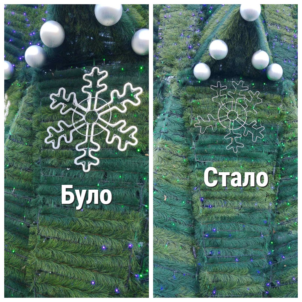 “5 грудня в парку Ювілейному була встановлена сучасна яскрава ялинка, але такою вона була не довго, в перші дні вкрадено кульки, потім ще кульки, а сьогодні якийсь нездоровий глузд вирішив що потрібно вкрасти ялинкові сніжинки які світяться, навіщо????? Що з вами?????? Ми боремося з ворогом, але, на жаль, він є і серед нас”, – обурюються у виконкомі.