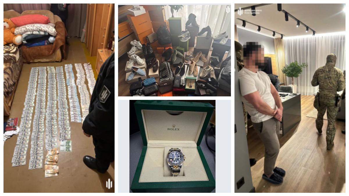 Під час обшуків правоохоронці вилучили автомобілі, документи на елітну нерухомість, брендовий одяг і аксесуари орієнтовною вартістю понад 8 мільйонів гривень, а також боргові розписки на 120 тисяч доларів США.
