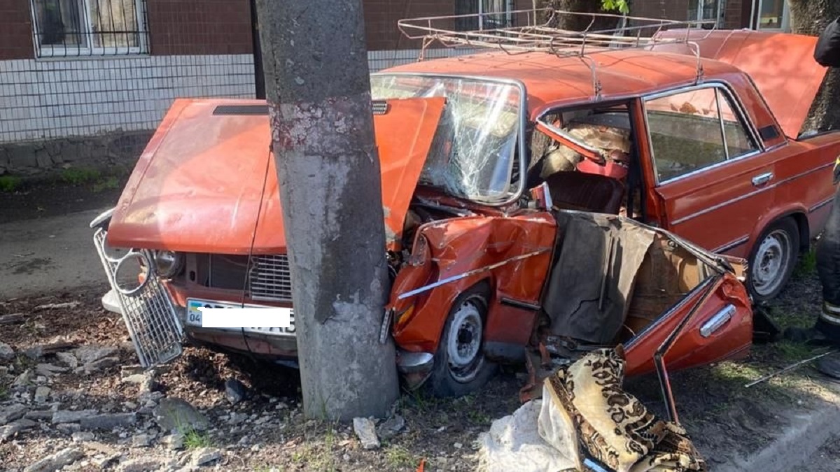 Вдень у Кривому Розі сталася ДТП. Водій легкового автомобіля “ВАЗ 2103” протаранив бетонний стовп. Автівка розбилася вщент, а водія затисло в салоні.