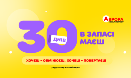 В мережі мультимаркетів «Аврора» для покупців діє сервіс «Легке повернення». Він дозволяє обміняти або повернути товар протягом 30 днів навіть без чеку...